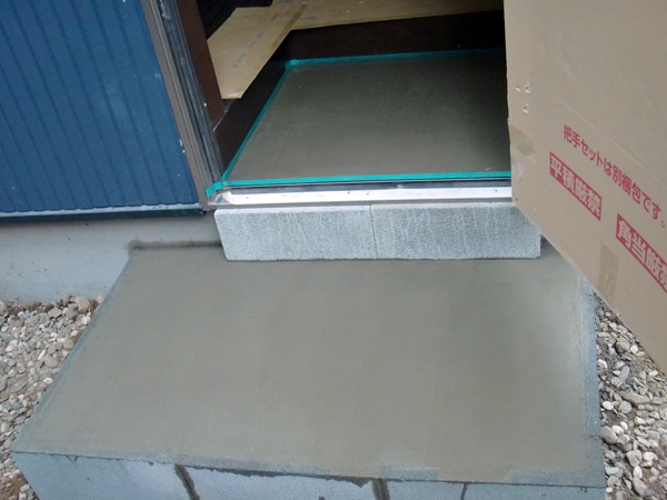 ![]() 増築箇所の基礎用の鉄筋を組み、ベース部分にコンクリートを打ち、基礎の型枠を組んだところです。型枠の中へコンクリートを流し込み、2日間放置後に型枠の取り外し作業をします。 | ![]() 基礎の中に鉄筋を組みをして、コンクリートを入れて均していきます。手前の小さな四角い枠は玄関土間になります。 |