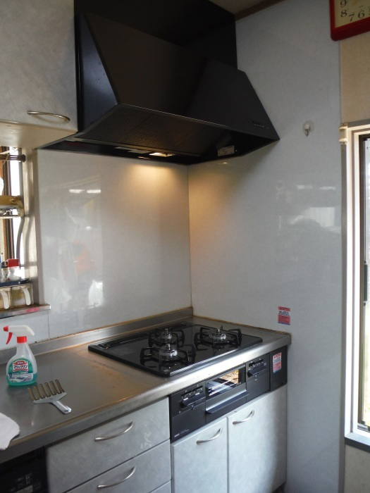 システムキッチンのレンジフードとビルトインガスコンロの取替が終了しました。