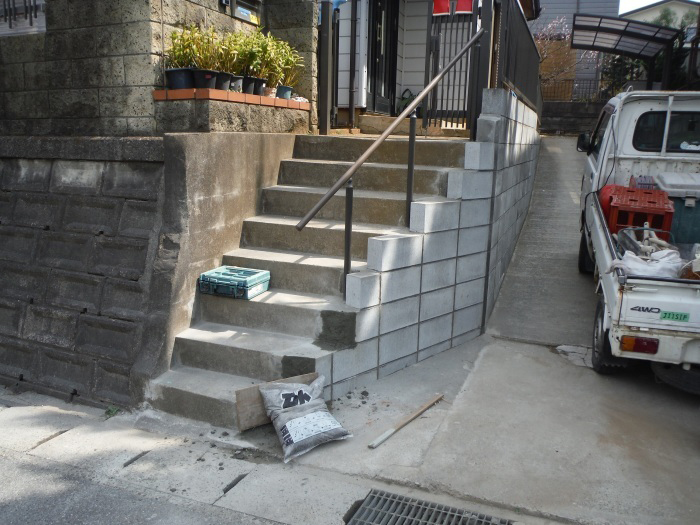 ブロック積み、土間コンクリート打、手すりの取付直しが終ったところです。