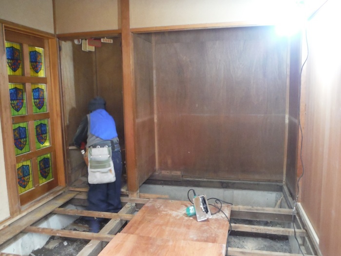 畳を取り外した荒床も浮いて、歩くと踏み抜くような感じでした。