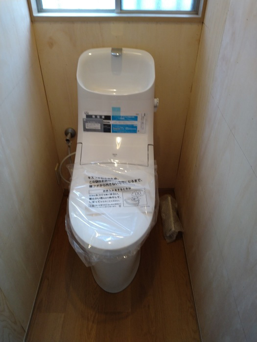 トイレは便座とタンクが一体型の便器に取り替え、お手入れがしやすくなりました。