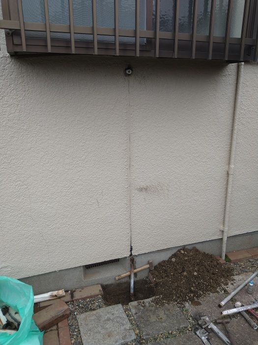 配管のために掘削した地面も元通りに戻し、これで屋外の作業はすべて完了です。