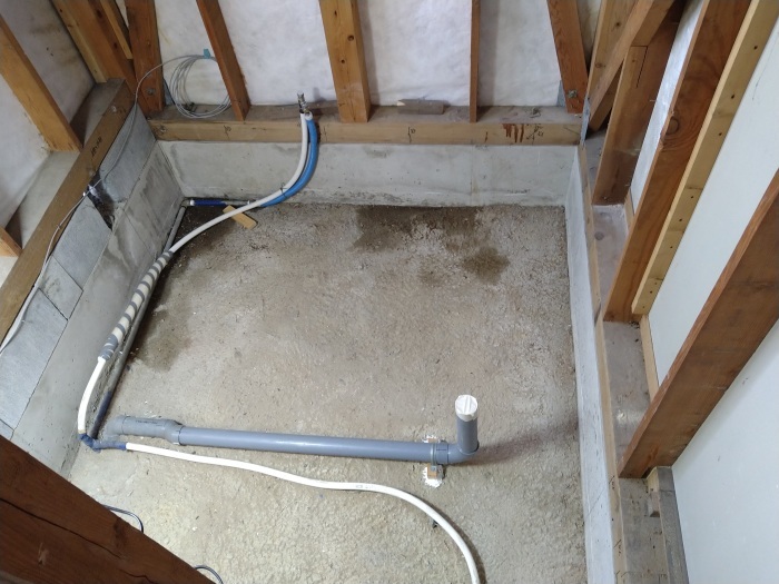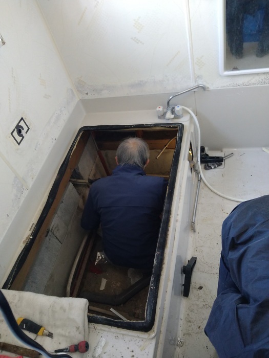 新しいユニットバスの仕様に合わせて、給水・給湯・排水の配管を最適な位置へ移設しました。