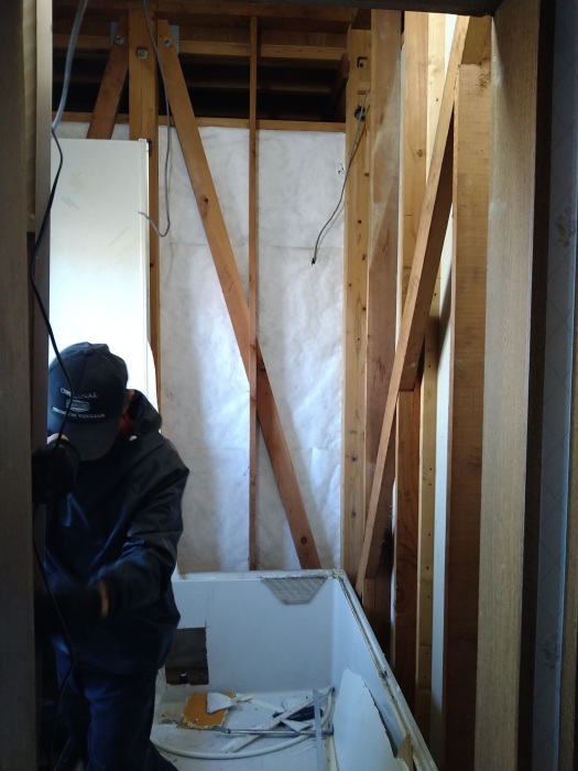 新しいユニットバスの入り口に合わせて、壁を大きく開口しました。