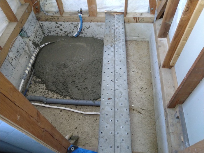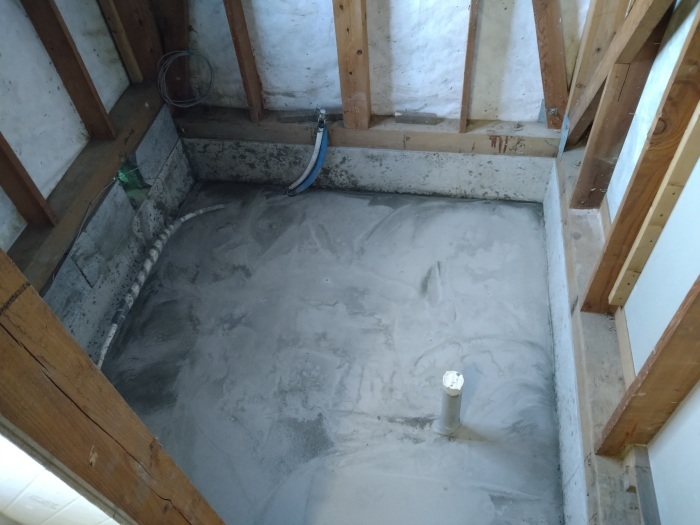浴室を水平かつ安全に保持するため、乾燥時間を十分に設けて強固な基礎を形成します。