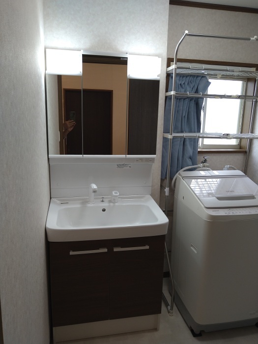 新しい化粧洗面台の設置を終え、すべての工事が完了しました。