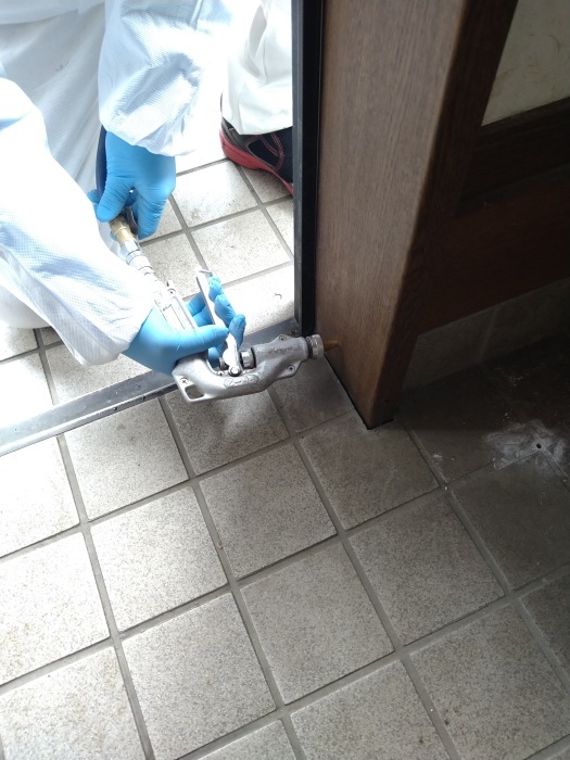 まずは玄関の左右にあるドア枠へ薬剤を直接注入します。