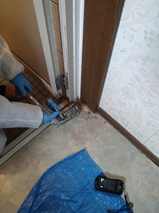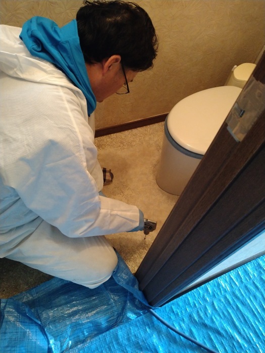 調査の結果、被害が深刻な箇所には「点検口からの散布」だけでなく壁や床の上からも直接薬剤を注入することにしました。