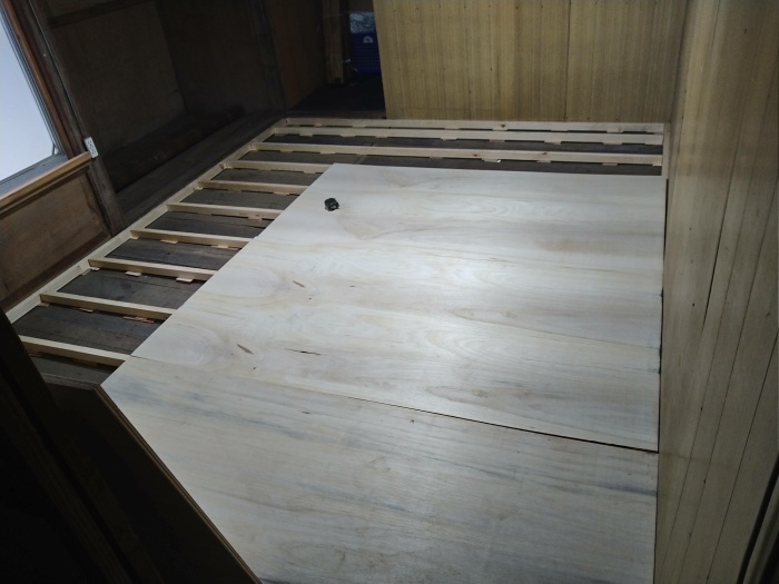 下地が整ったところで、厚さ12mmのベニヤ板を敷き詰めました。