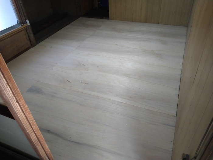 この後、お客様がご自身でクッションフロアを貼れるよう、平らなベニヤ板で仕上げます。