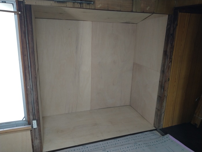 押し入れの床、壁、天井には新しいベニヤ板をていねいに重ね張りして仕上げ、見違えるようにきれいになりました。
