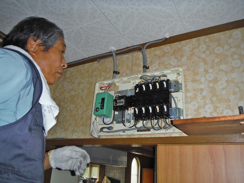 古い分電盤を取り外し、