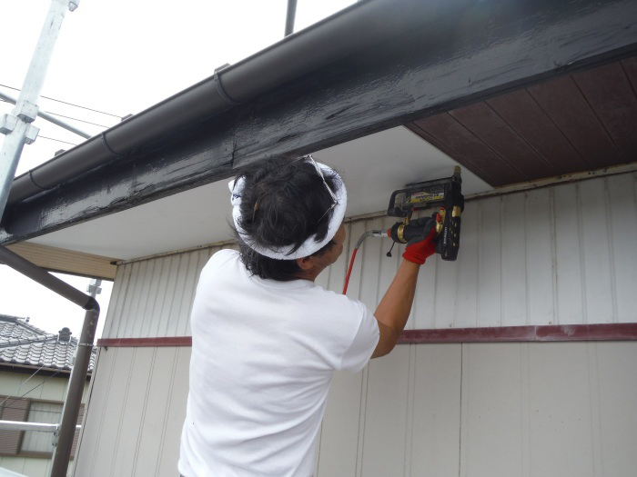 その後、軒天を塗っていきます。