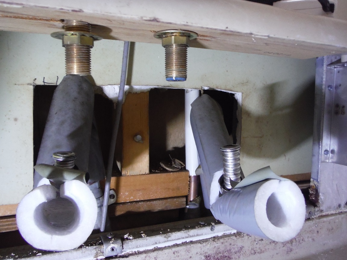 次に、扉内の給水・給湯配管と排水配管を取り外しました。