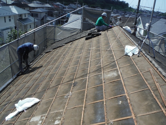 釘を外し、瓦を一枚一枚、すべて取り外しました。