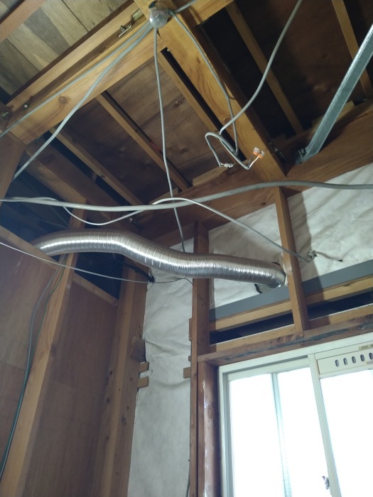 新しいユニットバスの入り口に合わせて、壁を大きく開口しました。