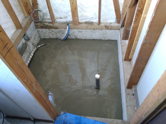 浴室を水平かつ安全に保持するため、乾燥時間を十分に設けて強固な基礎を形成します。