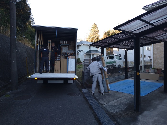 ユニットバスの設置は、朝の部材搬入から始まります。