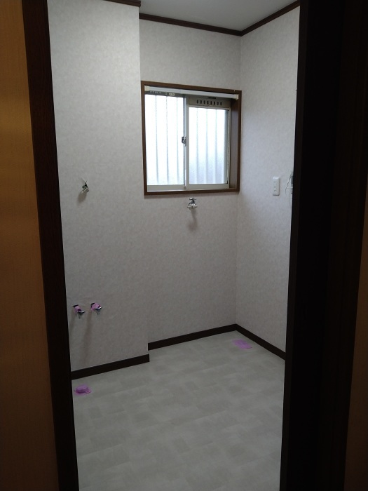 お風呂の設置が無事に終わり、いよいよ洗面所の内装リフォームです。