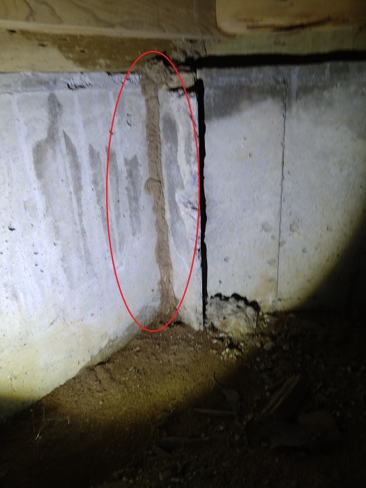 実際に潜って確認したところ、シロアリの通り道である「蟻道(ぎどう)」を発見。