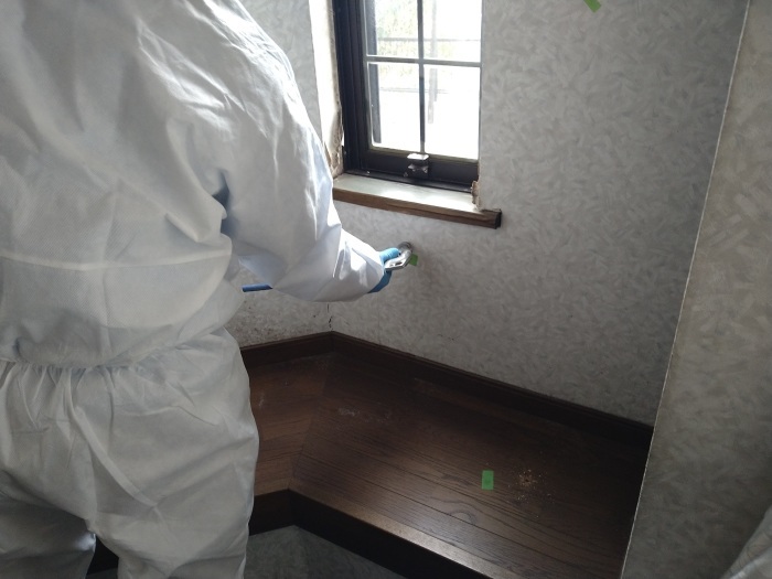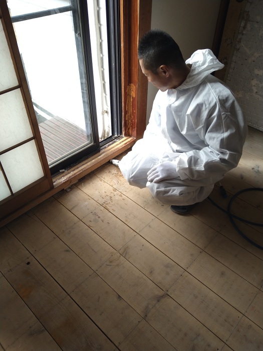 あわせて、被害の広がりを防ぐため、敷居や畳、床板の隅々に至るまで丁寧に薬剤を散布。