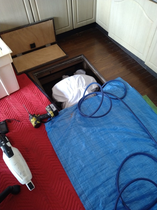 調査の結果、被害が深刻な箇所には「点検口からの散布」だけでなく壁や床の上からも直接薬剤を注入することにしました。